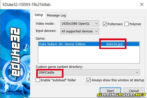 DNHCastle) dentro da pasta principal do EDuke32. - Execute o EDuke32 e, na tela inicial, selecione a pasta